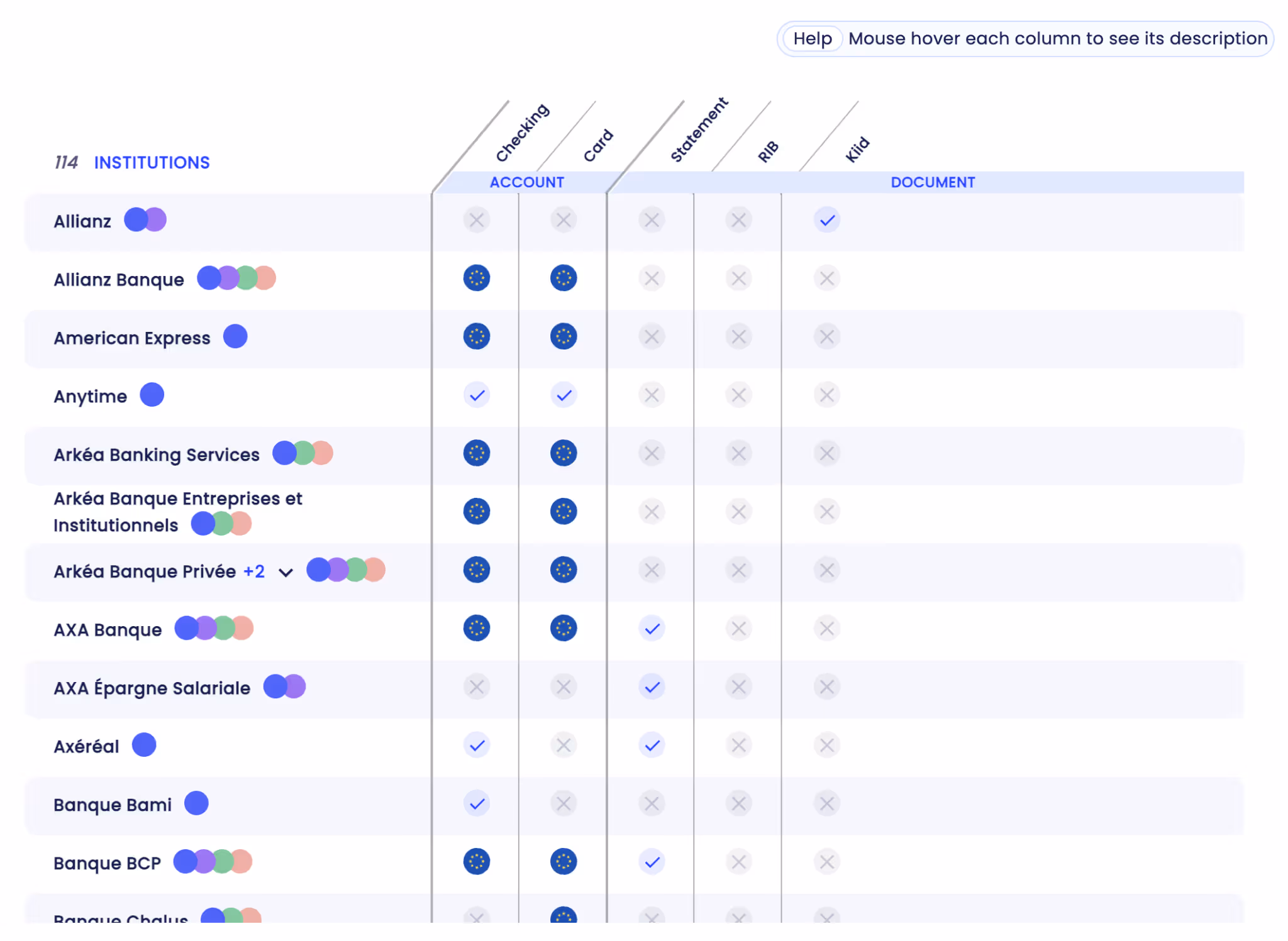 Retrouvez la liste des banques disponibles via notre partenaire Powens. Près de 1 800 établissements bancaires sont concernés pour simplifier votre quotidien.