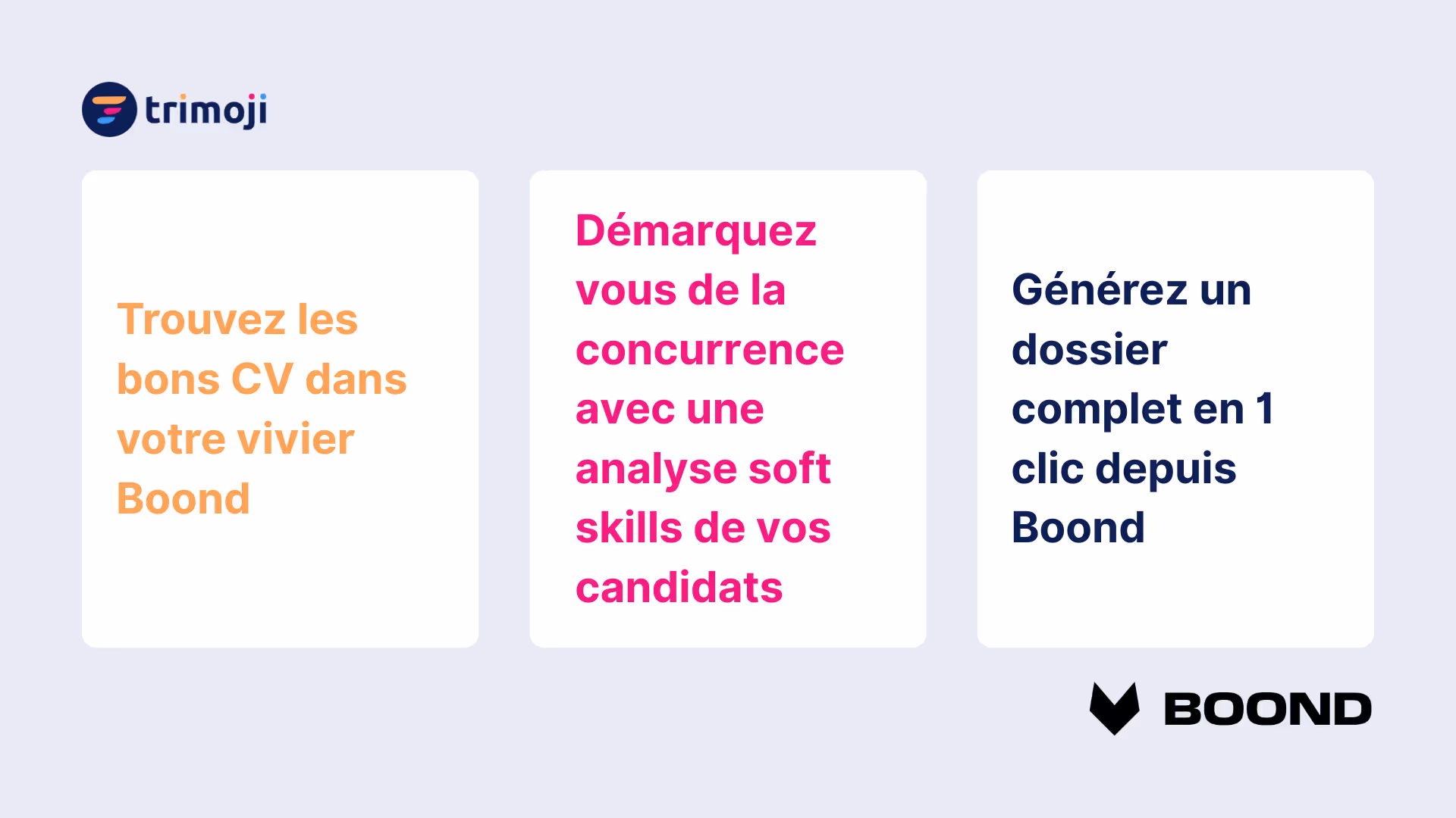 Bonne nouvelle pour vos équipes RH et commerciales : Trimoji, solution d'IA spécialisée dans l'optimisation du recrutement, s'intègre désormais à Boond.